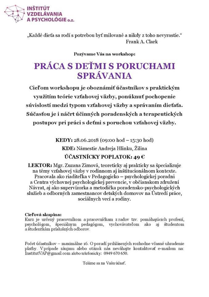28.06.2018? v Žiline: Práca s deťmi s poruchami správania s Mgr. Zuzanou Zimovou