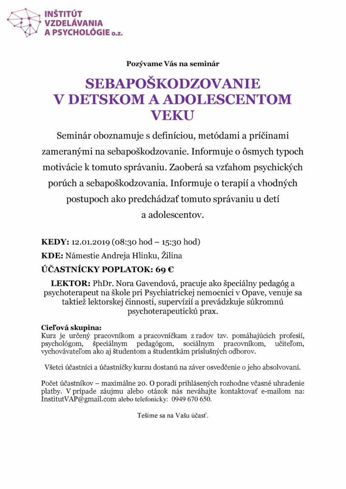 Výcvik pozostáva z 8 výukových dní a 2 dni obhajob záverečných prác. V prípade bližších informácií o výcviku nás neváhajte kontaktovať na IstitutVAP@gmail.com